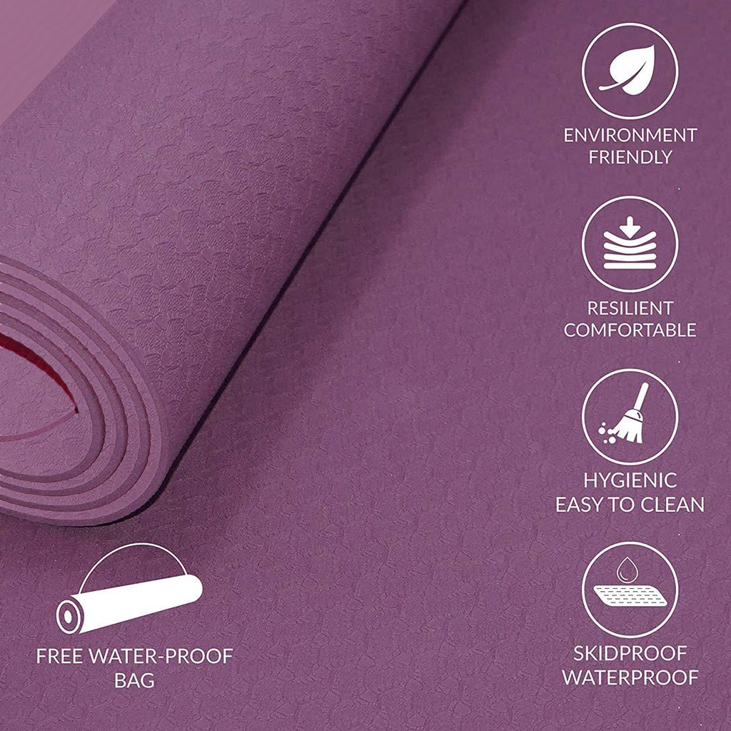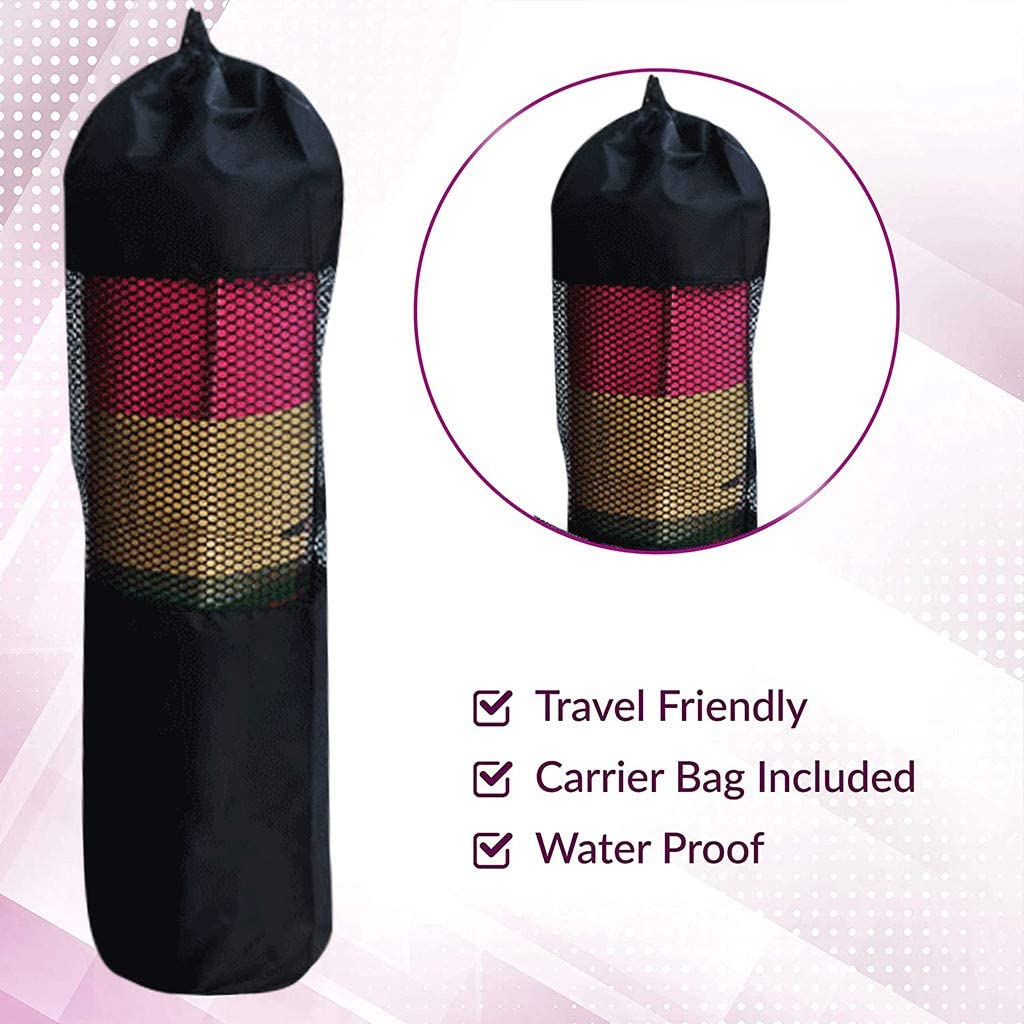These yoga mats are lightweight & come with a waterproof carry bag so they are easy to travel with. They come in 6 different eye-catching colors (black/blue/purple/violet/pink/green) & are great for all types of fitness and exercise.